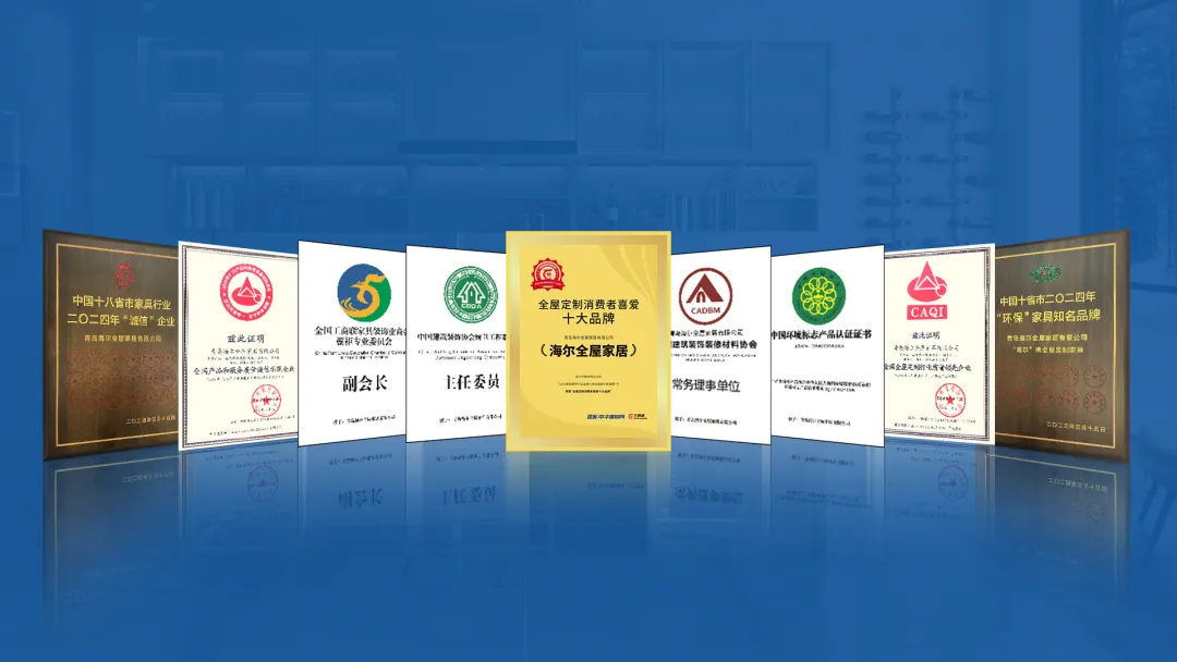 海尔全屋家居品牌,获得“完美厨房解决方案供应商”、中国环境标志产品认证,并通过ISO9001质量管理体系、ISO14001环境管理体系认证。以优质的服务理念、过硬的产品质量,荣获“中国全屋定制强国品牌”、“全屋定制消费者喜爱十大品牌”、“环保家具知名品牌”、“全国家居行业质量领先品牌”等殊荣,为全屋定制行业树立匠心品牌典范。