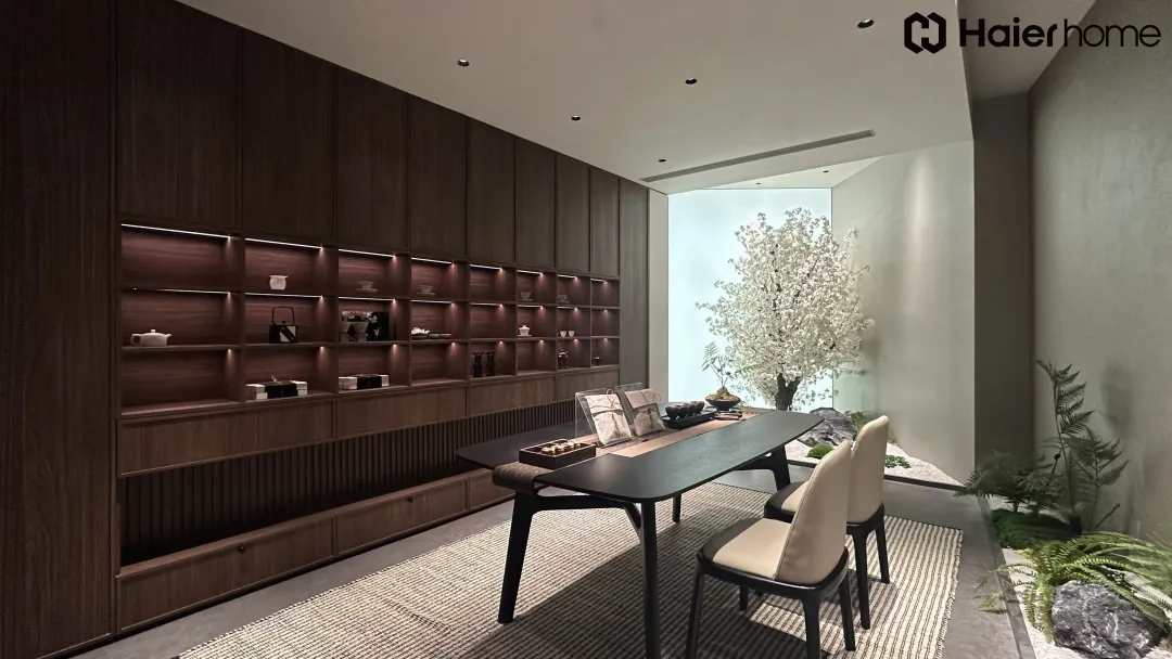 • 中古风禅意茶室:林肯胡桃木皮碰撞现代新中式,宋代四大雅事融入空间,墙垛打通+单色柜体让小户型显大翻倍,灯带围合设计营造沉浸式品茶氛围,经典线条+实用主义,打造永不过时的家居顶流。