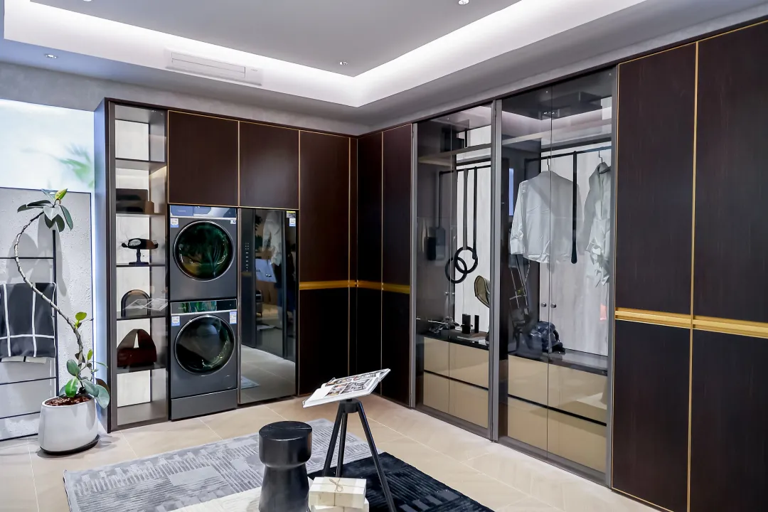 在本届大家居建装行业全球第一展上,海尔全屋家居携手三翼鸟共创智慧家一居室体验区,展示了智慧全屋、柜电一体、个性化定制三大理念。从用户需求出发,打破了家电和定制行业的界限,推出了柜电一体的场景方案,保障用户最佳生活体验。将家庭空间还原:玄关、厨房、阳台、客厅、衣帽间、卧室、浴室,沉浸式体验不同家居场景的感受。